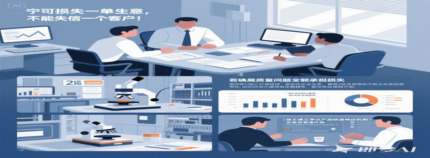 12月5日,鎂王公司召開了緊急會(huì)議。會(huì)議室里,氣氛凝重,大家都在討論著應(yīng)對(duì)方案。有提出讓第三方檢測(cè)的,但這個(gè)方案耗時(shí)7天,很可能會(huì)錯(cuò)過客戶的交期;也有建議先行補(bǔ)發(fā)合格品保障生產(chǎn),同步送檢厘清責(zé)任的。就在大家爭(zhēng)論不休時(shí),畢總一拍桌子,堅(jiān)定地說:"寧可損失一單生意,不能失信一個(gè)客戶!我們選擇先行補(bǔ)發(fā)合格品,這是我們的誠信擔(dān)當(dāng)。